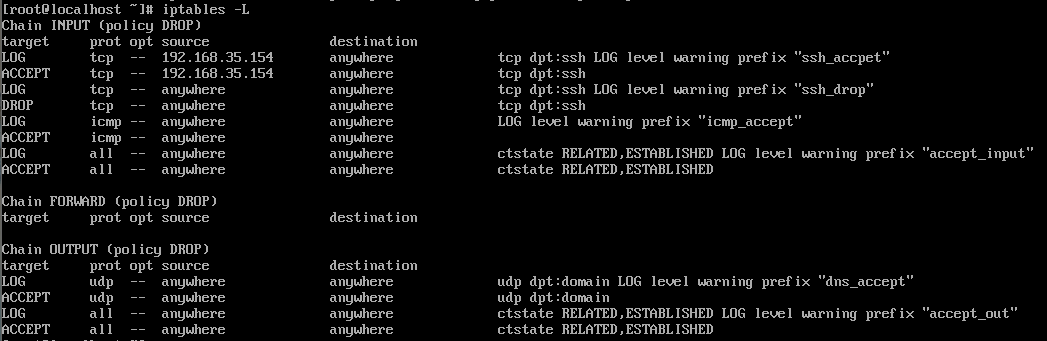 iptables -A OUTPUT -p tcp --sport 22 -j LOG --log-prefix "ssh_drop"